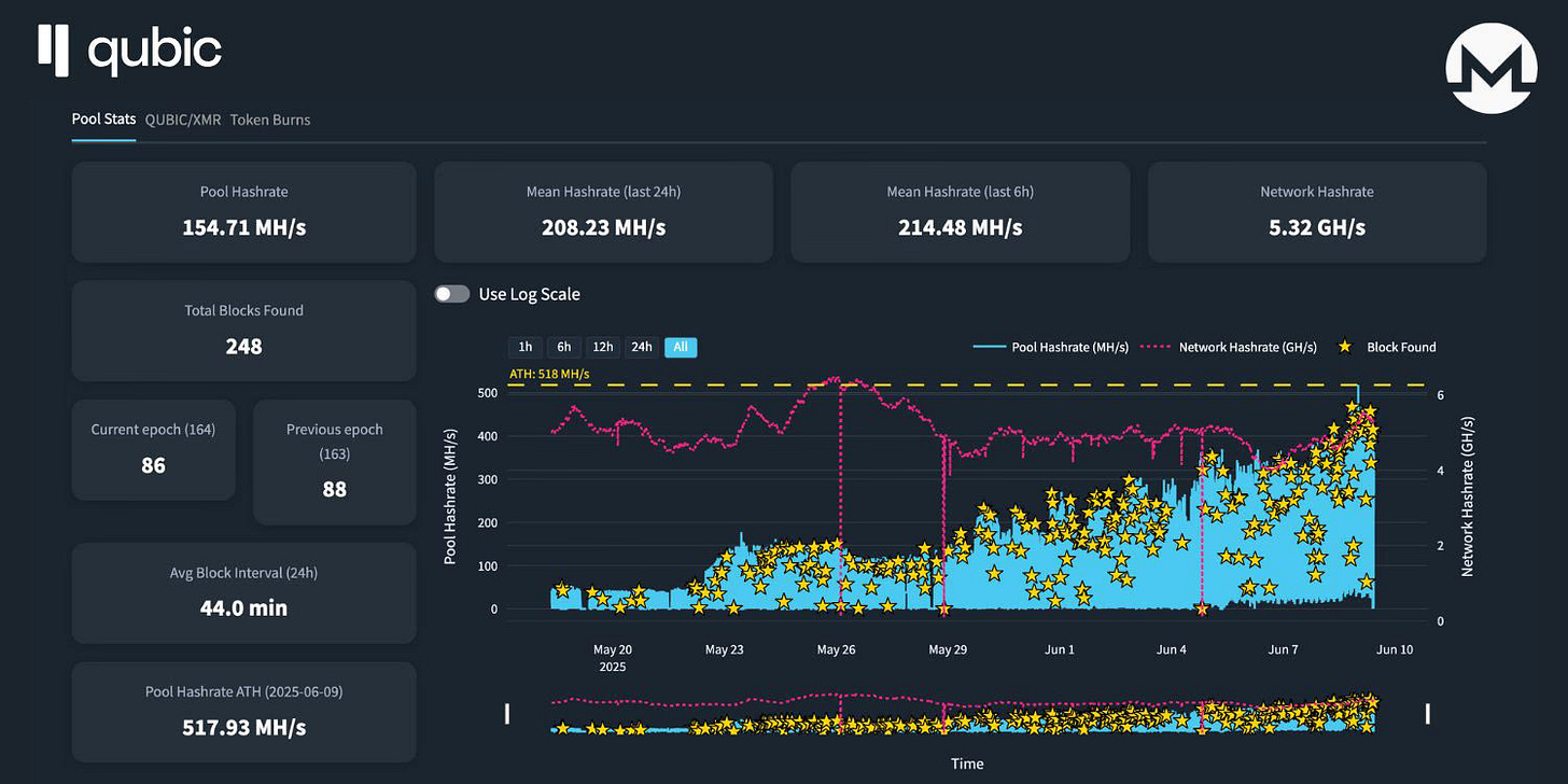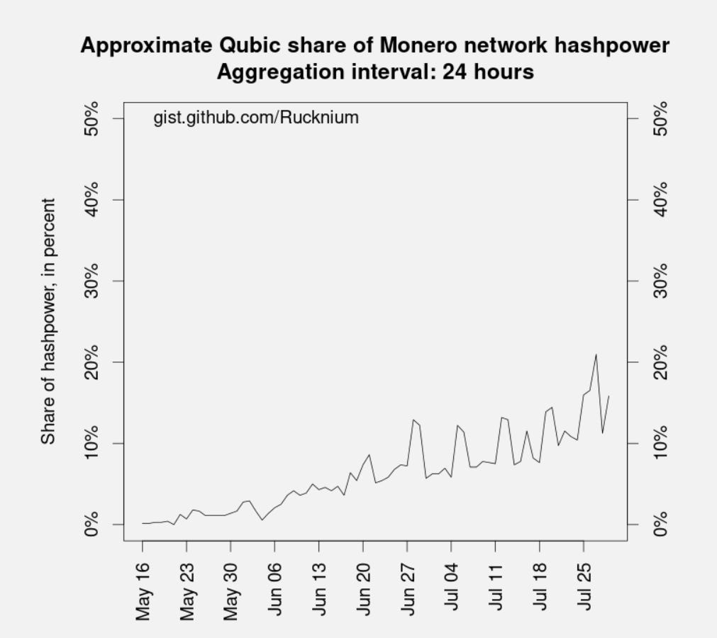 In June, Qubic announced the ability to merge mine Monero (XMR) and Tari (XTM), claiming to have reached around 10% of Monero’s total hashrate.