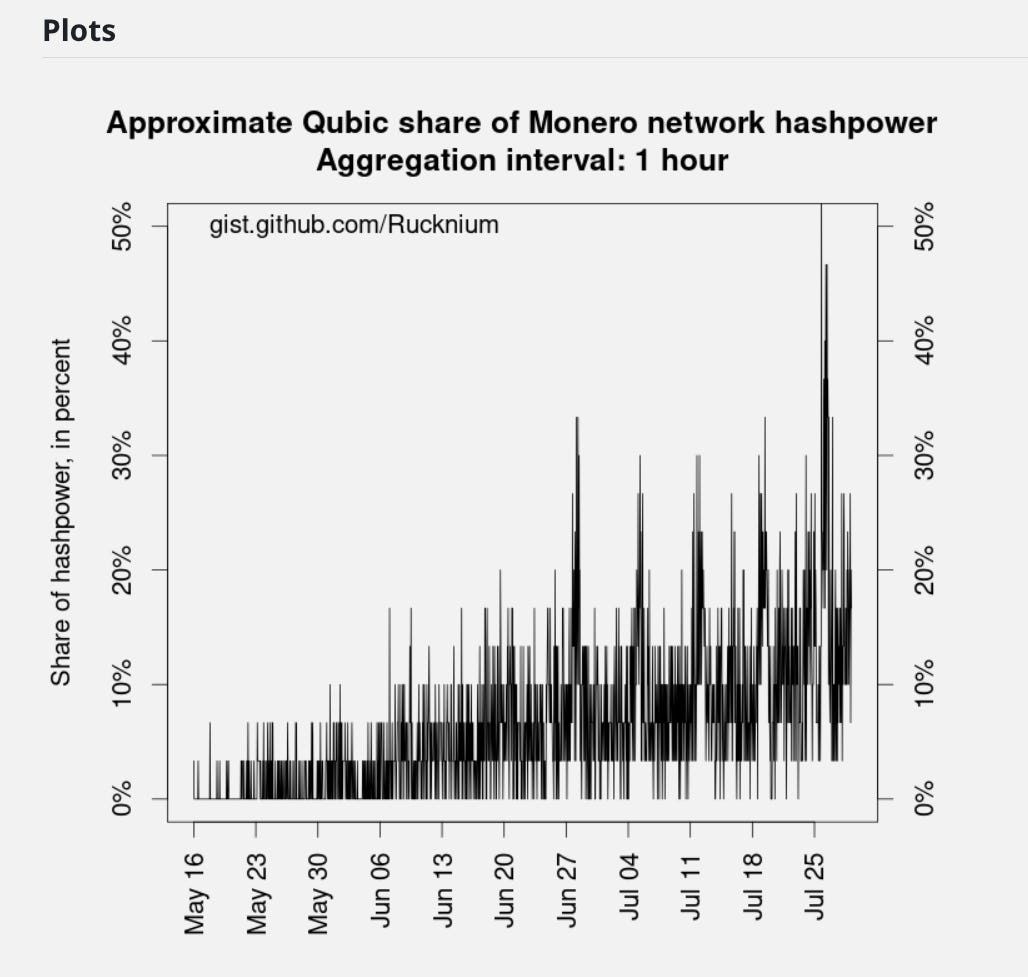 The Monero community has remained largely unconcerned. There has been no official response, but Rucknium, a statistican from the Monero Research Lab, did publish an analysis of Qubic’s hashpower on their Github.
