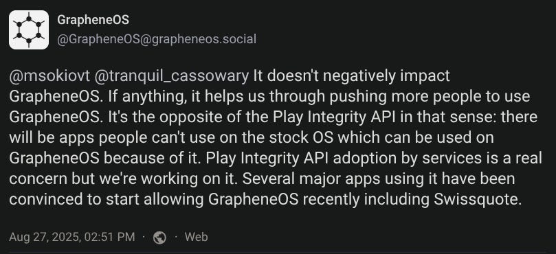 These changes build upon the rollouts of Google’s App Integrity, which is a service app developers can use to check if they’re running a ‘certified’ Android operating system. Of course, and as we’ve written previously, this service does little for security and is meant to enforce Google’s monopoly.